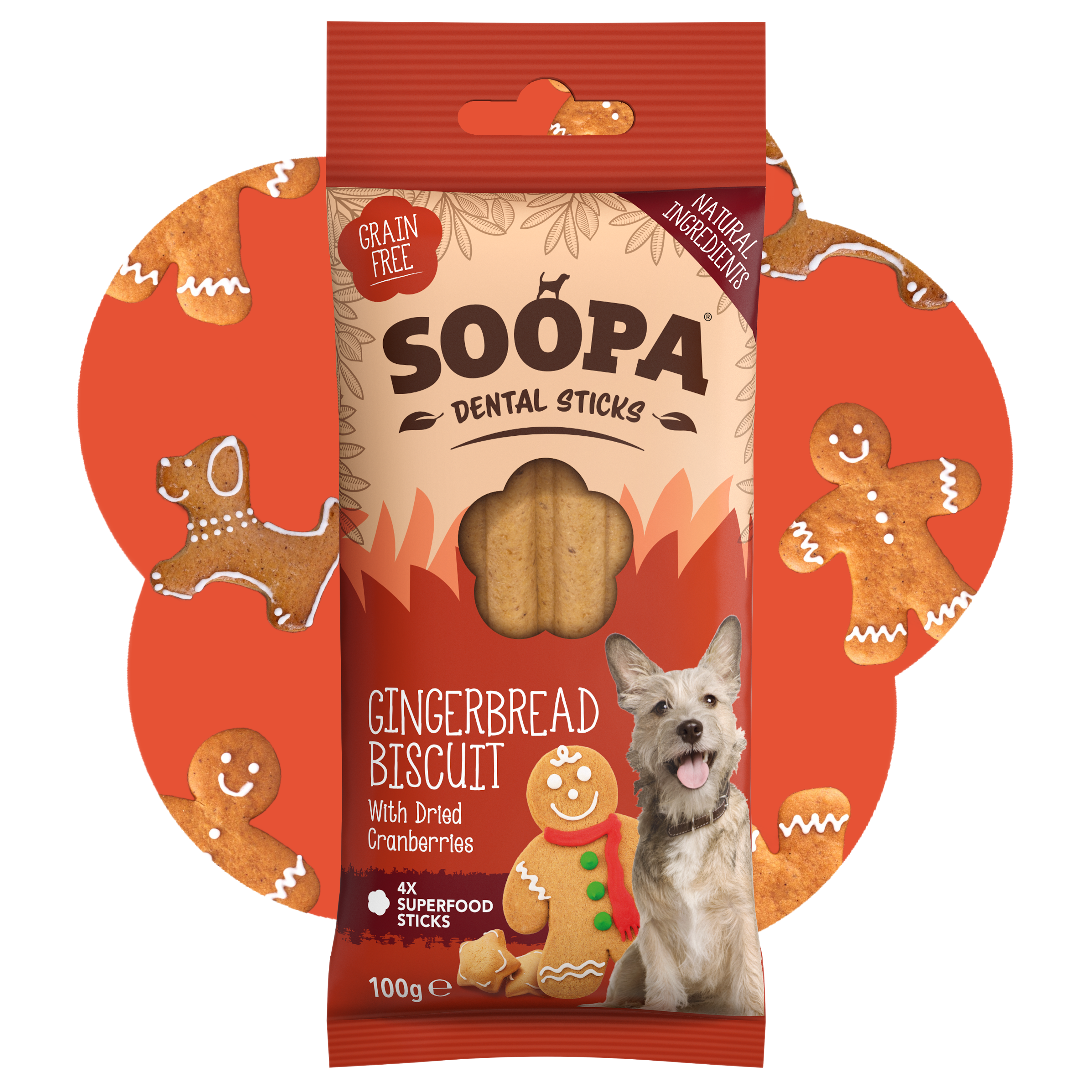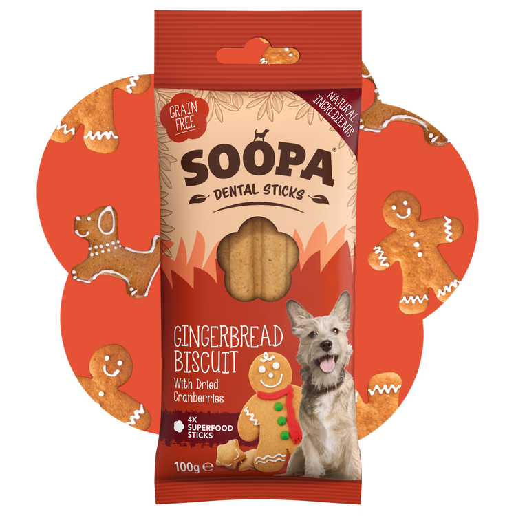Pawsitively Festive! Our Gingerbread treats are the perfect winter snack for your pup! Baked with soothing ginger and nourishing cranberries they aid digestion, reduce inflammation, help soothe upset tummies and boost urinary tract health. Full of cosy, festive flavour, these treats are a holiday must-have for your furry friend!