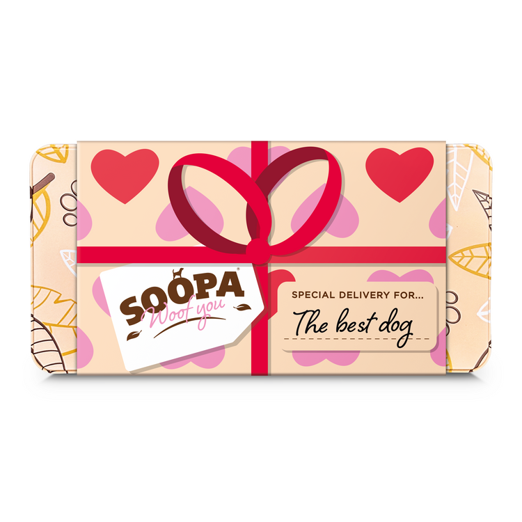 Inside, you’ll find the tasty Soopa treats you already know and love, made with our usual human-grade, plant-based ingredients, along with a sweet surprise to make their day even more special. It’s the kind of gift that says “you’re my best friend” without needing words.